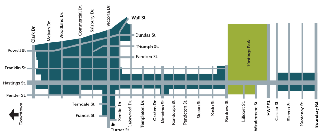 Framed by mountain views and Burrard Inlet, the East Village sits at the heart of two historic neighbourhoods: Hastings Sunrise and Grandview-Woodland.